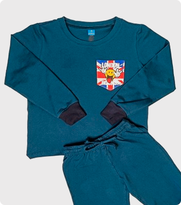 Pijama Verano London Smile petroleo unisex junior manga larga